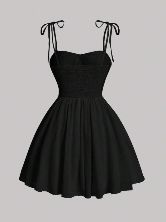Tie-Shoulder Sweetheart Neck Mini Dress