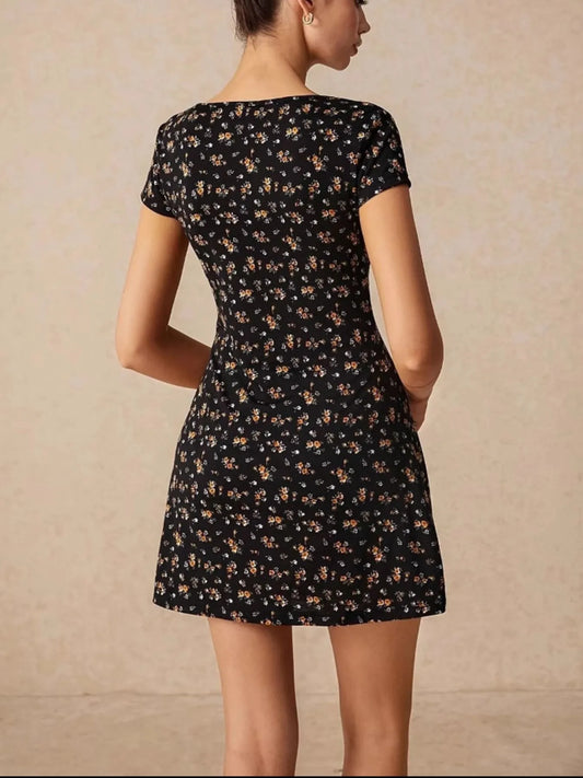 Vestido veraniego bohemio con estampado floral multicolor y fruncido