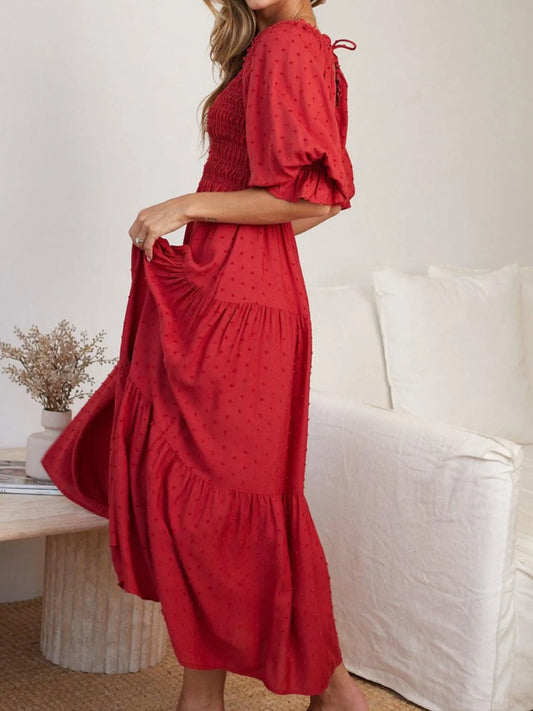Backless Tiered Puff Sleeve Midi Dress