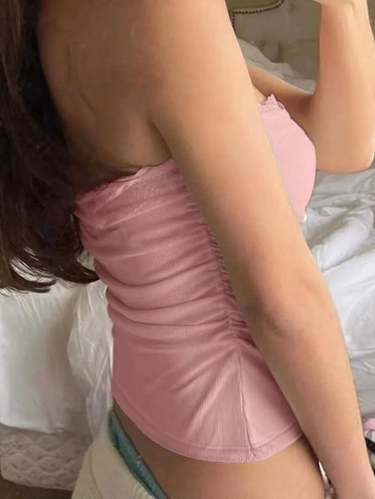 Camiseta sin mangas con dobladillo festoneado y bordado con ojales