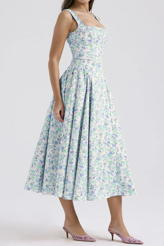 Printed Sweetheart Neck Bodycon Maxi Dress